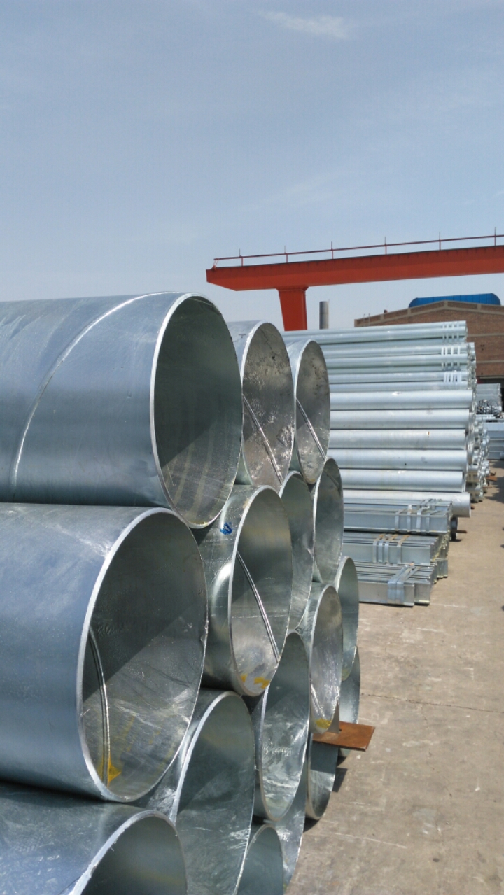 (7)成品的螺旋鋼管進行鍍鋅,首先進行噴砂除銹-酸洗烘干-氧化后進行鍍鋅。
